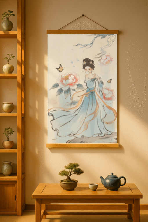 ranh Mành Trúc Thiếu Nữ Bên Hoa là dòng mành trúc in UV 5D cao cấp, tái hiện hình ảnh thiếu nữ Việt dịu dàng bên hoa, mang đến vẻ đẹp thanh cao và một không gian trang nhã, sang trọng.