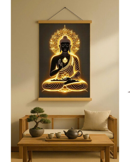 Mành trúc treo tường Phật giáo là sản phẩm trang trí mang đậm yếu tố tâm linh và nghệ thuật, kết hợp giữa hình ảnh Đức Phật với chất liệu trúc tự nhiên, giúp tạo nên không gian thanh tịnh, thư giãn và đầy ý nghĩa phong thủy.